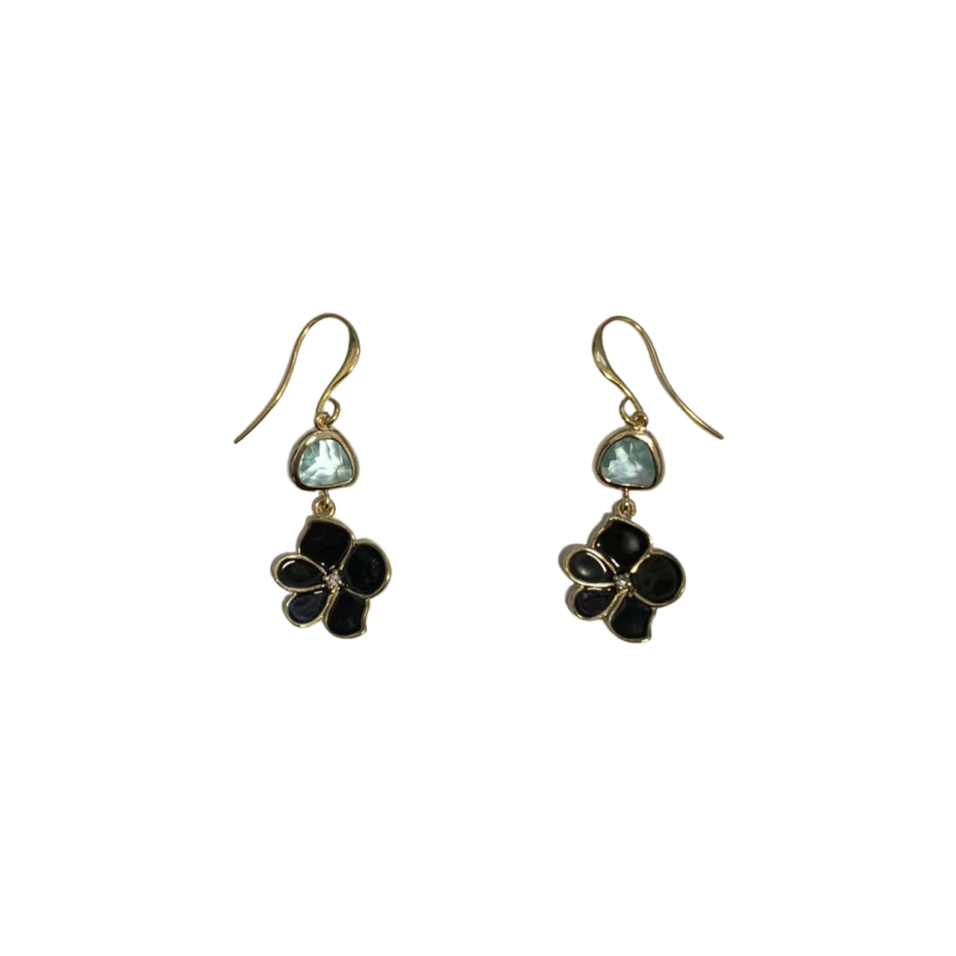 One of a kind, hand crafted earrings with aquamarine crystal and flower charms.